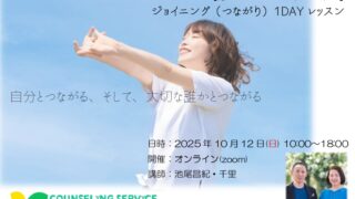 カウンセリングサービス <キャンセル待ち受付中!>【池尾家1DAY・7/21(月祝)名古屋】ジョイニング(つながり)1DAYレッスン 〜雨の日も、晴れの日も笑って歩けるように〜 【定員となりました。10名限定でキャンセル待ち受付中です!】<キャンセル待ち受付専用フォーム>*開催日近くにキャンセルが出る場合もありますので、あきらめずにキャンセル待ちのお申し込みをいただけたらと思います。ラジオを聴いていたら、スキンケア... 2025.07.06 カウンセリングサービス